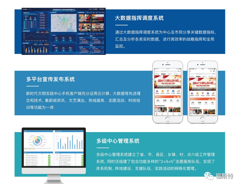 安徽福斯特信息技術有限公司持續(xù)助力新時代文明實踐中心建設,充分利用大數據、云計算、移動互聯(lián)網等新一代信息技術,打造新時代文明實踐中心云平臺,完善平臺動員、整合、引導、服務、創(chuàng)新和保障能力,實現(xiàn)新時代文明實踐中心的可持續(xù)運營。